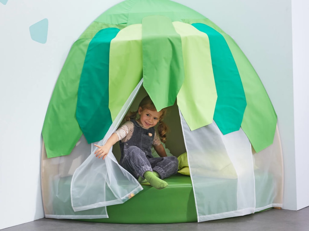 Für Kinder sind Rückzugsorte besonders wichtig. In einer Praxis oder bei der Therapie sorgen solche geheimen Ecken bei Kindern für Ruhe und Entspannung. Hier können sie unbekannte Situationen erst einmal in Ruhe kennen lernen. Eine Sinneshöhle oder eine Ecke, die mit bunten Tüchern abgehängt ist, bietet genügend Schutz und einen spannenden Bereich im Wartezimmer, an dem sie in ihre eigene Welt abtauchen und Ängste und Unruhe vergessen können.