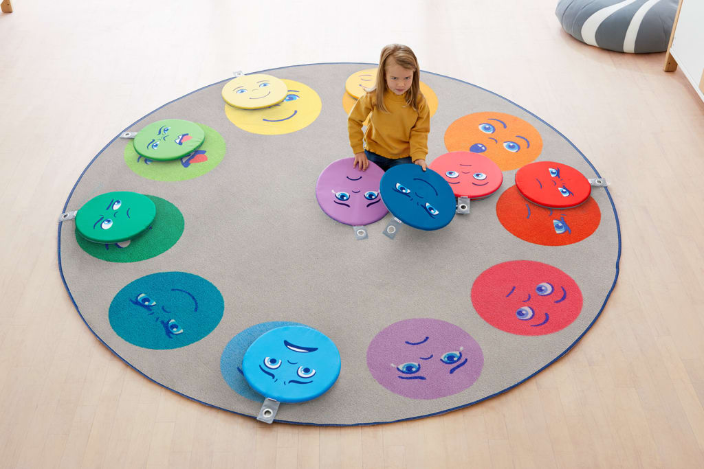 So geht’s: Die Kissen werden im Kreis auf den Boden gelegt. Die Kinder setzen sich auf die Kissen, ein Kissen bleibt frei. Das Kind, dessen rechtes Kissen frei ist, sagt: „Mein rechtes Kissen ist leer, ich wünsche mir Lea her“. Lea soll nun den Gesichtsausdruck auf dem leeren Kissen anschauen, ihn benennen (z.B. traurig) und das Gefühl nachspielen (z.B. so tun, als ob sie weint). Danach darf es sich auf das leere Kissen setzen. Nun ist das Kind an der Reihe, dessen rechter Platz nun leer ist.
