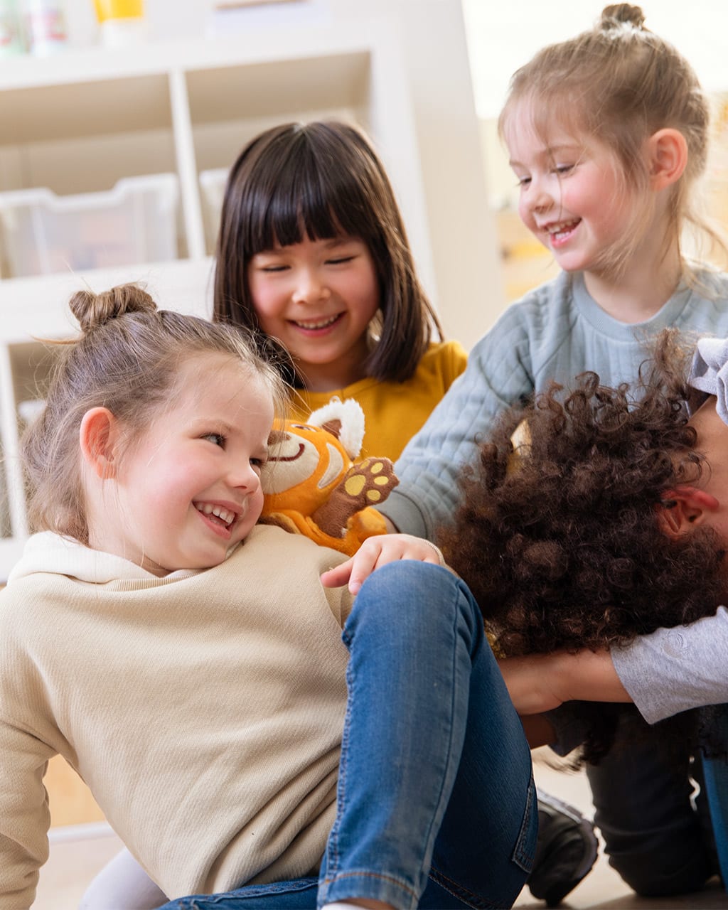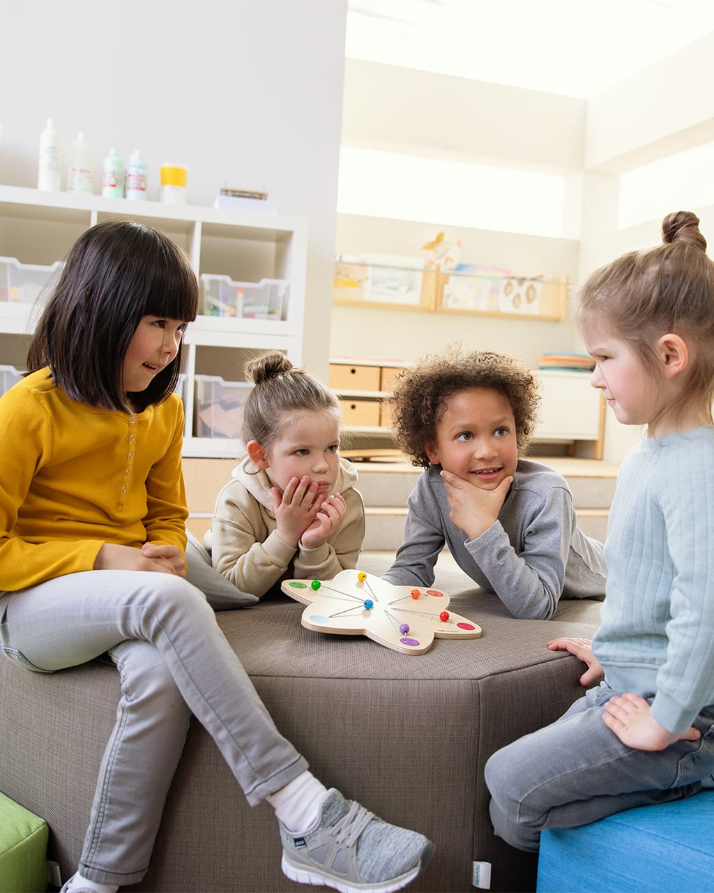 Kleinkinder sind bei der Kommunikation und der Regulation von Emotionen noch sehr auf ihre Eltern als Bezugspersonen angewiesen. Bei ihnen sichern sie sich ab: Darf ich das? Und bei starken Gefühlen wie Trauer oder Wut sind die Eltern da, um die Kinder zu beruhigen und abzulenken. Ab dem Vorschulalter beginnt dann die Selbstregulation. Hier setzen Kinder um, was sie aus dem Miteinander mit Gleichaltrigen, Eltern oder Erzieher:innen gelernt haben. Ein wichtiger Faktor bei der Selbstregulation ist die Sprache: Eine gute Sprachentwicklung ermöglicht es Kindern, verbal auszudrücken, was sie beschäftigt, und bei Konflikten zu diskutieren und eine gemeinsame Lösung zu finden.